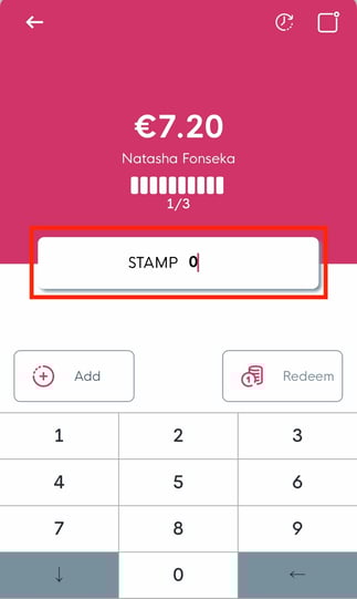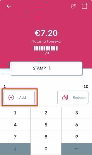 7) Then enter the stamp amount - tap 'Add' to add it to the customers account/voucher.