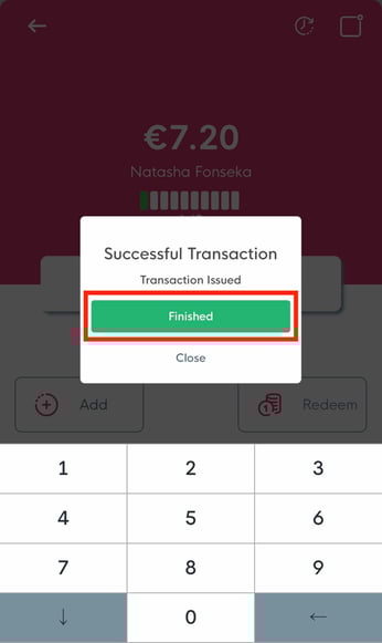 After pressing 'Add' a notification will appear on screen confirming that the transaction has been successful.