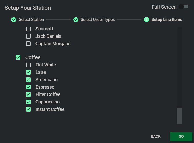 Then you choose the Categories/Items you want to appear. If you only want the items you have visible for Ordering then these are the ones you will want to enable. You can also enable just specific items should you wish to.